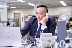 代理店へのルート営業を中心に、商品PR、展示会出展、現場同行で製品点検や使用方法のレクチャーを行い、信頼関係を構築する仕事です。
